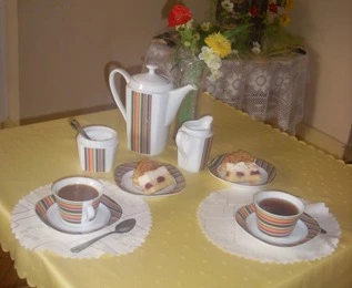 W trakcie wykonywanej pracy zwraca się szczególną uwagę na bezpieczną obsługę sprzętu, oraz jego właściwe użytkowanie. Uczestnicy nabywają umiejętności przygotowania prostych posiłków i dań na zimno i na ciepło takich jak: zupy, naleśniki, zapiekanki, kanapki, które będą w stanie przygotować w domu samodzielnie, oraz przygotowują ciasta, desery i sałatki. Innym ważnym punktem zajęć w pracowni gospodarstwa domowego jest nauka prawidłowego wykonywania czynności porządkowych w jadalni i w kuchni, mi.in zmywanie naczyń, sztućców i garnków /ręczne oraz przy użyciu zmywarki/, wycieranie naczyń, odpowiednie układanie ich w szafkach do tego przeznaczonych, ścieranie blatów kuchennych, stołów, zamiatanie i zmywanie podłogi. W trakcie trwania prac porządkowych uczestnicy uczą się również umiejętnego stosowania środków czystości i detergentów. W każdym dniu przygotowują dla swoich kolegów ciepłe napoje/kawa, herbata/i serwują je w kawiarence warsztatowej, równocześnie ucząc się obsługi klienta. W trakcie imprez okolicznościowych w warsztacie przygotowują salę oraz obsługują zaproszonych gości.